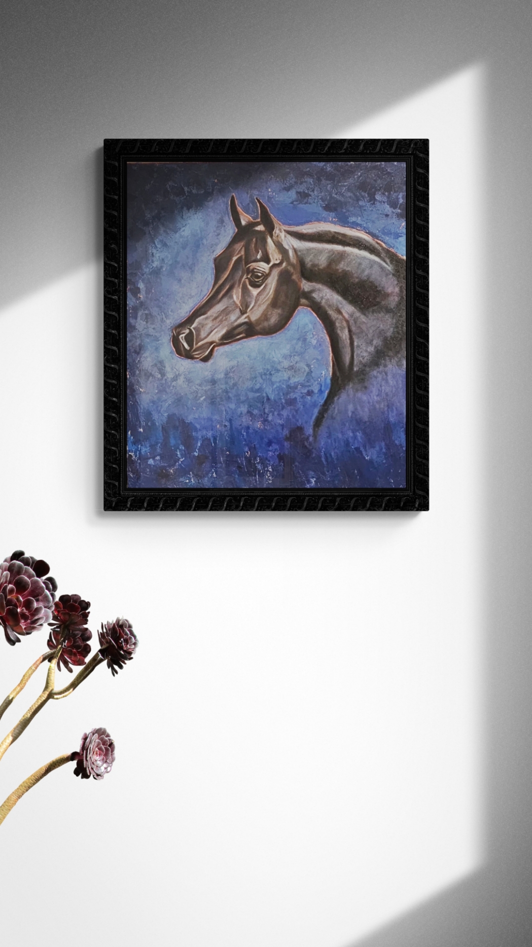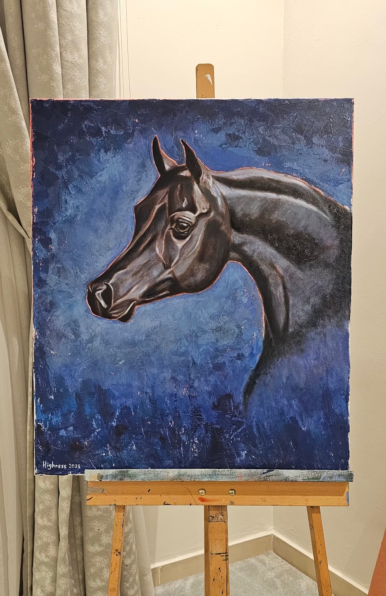 رسمة طلب خاص وحصرية ( قطعة فنية واحدة فقط ) للخيل العربي الاصيل - الوان زيتية مع أكريليك - على كانفاس - مقاس ٦٠* ٧٠ سم